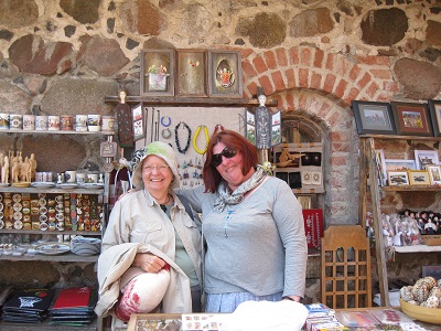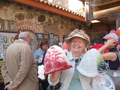 LithuaniaVeronica Thighe (AKA Queen Victoria) from Denver by way of England, Marguerite, Renee Walter, and Gretchen Turner at the welcome dinner. We began our trip in Vilnius, Lithuania after about a 20 hour trip to get there. The next day we participated in OAT's "A Day in the Life" experience at Darguziai village. The group had lunch with two Lithuanian families in their homes. The lady hosting Marguerite's group had lived through "Soviet times" (1940-1991) when Lithuania was under Soviet rule and she was very happy to now live in a free country. She and her family had a small farm and raised vegetables and livestock. During Soviet times their farm was nationalized and was part of a collective farm. Next we went to a cheese house where we learned about making cheese (and sampled some!) and ended the day at a local restaurant where we ate potato dumplings (they were very sticky, heavy, and we did not like them at all!!) The next day we visited Trakai, considered the de facto medieval Lithuanian capital. After a short boat ride to visit the Trakai Castle, we had a bit of time to shop! Marguerite bought felted wool hats for herself and her sister, Betsy. We then went to a small restaurant where we learned about making traditional Karaite pastry specialties. |