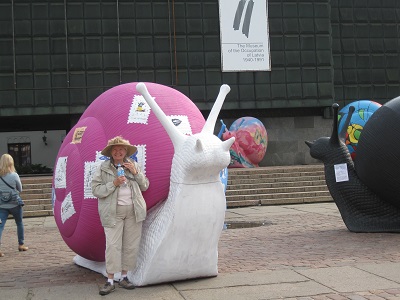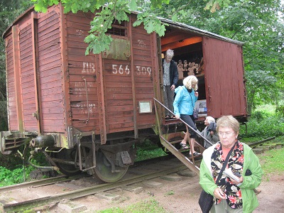 One of the most moving parts of the trip was a visit to the Museum of Genocide Victims, commonly called the KGB museum because it occupies the former KGB headquarters. For much of the 20th century Vilnius was under brutal, communist Soviet occupation, both before and after a 3-year Nazi occupation during World War II. The museum serves as a memorial to the victims of the atrocities that took place, including the prison where KGB held dissidents and freedom fighters. Later we visited an elderly woman whose family had been sent to Siberia during WWII. We heard about the horrible conditions and were amazed that she survived. Much of her story is told in a book called "Between Shades of Grey" that most of the travelers had read in preparation for the trip. There was also interesting artwork. She showed us one of the train cars where over 60 people were transported to Siberia and an example of a Yurt people built there to survive. This was an extremely moving and sad experience. The blonde woman in several photos is our Tour Leader, Aida Cepiene, from Lithuania. |