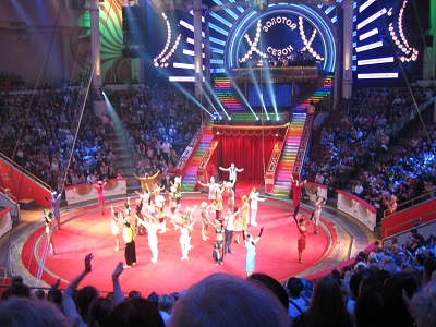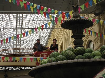 Moscow, RussiaWe arrived in Moscow mid-morning and checked into our hotel. The hotel is state-owned and a very nice property, although not fancy! On a brief walk, we found a McDonald's and other interesting shops. We then embarked on a city tour of Lubyanskaya Square, the Kremlin Embankment, and the Red Square. A large celebration was going on in Red Square so we were not able to visit Lenin's tomb . We had an ice cream at a huge shopping center, complete with a watermelon fountain! In the evening many of us attended the Moscow Circus. It included outstanding performances by aerialists, clowns, jugglers, acrobats, and truly celebrated this Russian tradition. |
