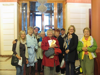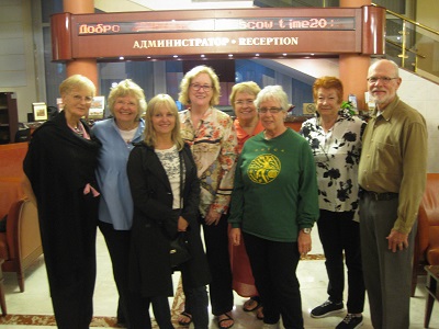 The group celebrated the completion of the trip at a lovely local restaurant. Martha, Cheryl, and Karen left us the next morning, but the remaining 9 travelers and Aida, our Trip Leader, continued on by plane to Moscow. Front row: Gail Riba, Aida Cepiene (Trip Leader), Veronica Thighe; Second row: John Doellinger, Karen Byrne, Gretchen Turner, Jane MacGtregor, Renee Walter; Third Row: Marguerite Dill, Al Bennet, Jayne Bennet, Cheryl Parlato, Martha Sheperd |