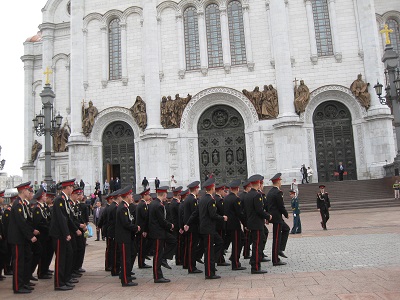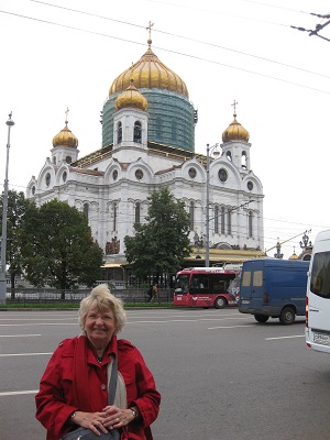 The group gave Marguerite lovely cards and best wishes for her Birthday and the hotel provided a bottle of wine and fruit! It was a lovely birthday and included lots of interesting sights and experiences. The city tour included a visit at the Cathedral of Christ the Savior, one of the world's largest Russian Orthodox churches. They were having a military celebration there. Next we stopped at an old cemetery that included graves of many famous Russians as well as Soviet military leaders. |