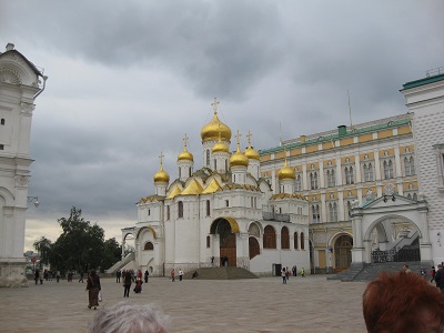 The Kremlin is a historic fortified complex in the heart of Moscow with Saint Basil's Cathedral and Red Square to the east. It includes several palaces, many churches, and the Kremlin Wall with Kremlin towers. The complex serves as the official residence of the President of the Russian Federation. It previously was used for the government of the Soviet Union (USSR: 1922-1991). The Kremlin Armory includes some of Imperial Russia's finest treasures. The former arsenal of the tsars from the 16th to early 20th centuries, the Armory was later turned into an exhibit hall for the public. It includes coronation regalia, ceremonial weaponry, and the world's largest collection of Imperial Faberge eggs. There were about 40 of these eggs produced and this museum has 10 of them. At the end of the trip we went to the top of a hill for a panoramic view of Moscow. The trip concluded with another farewell dinner and very early flights home. Marguerite and Renee left at 2:30 am to get to the Moscow Airport for a 5:45 flight to Vienna. Marguerite then continued on to Newark and San Diego; Renee went to Dulles and Phoenix. The trip was a wonderful experience and we learned a great deal about Eastern Europe. |