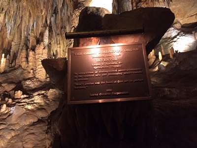 We spent the night in Luray at the Mimslyn Inn, a grand hotel built in 1931 that includes historic cottages, a fully restored manor house, and beautiful views. The next morning we went to Luray Caverns. George had recommended we see this remarkable place. Betsy said she and Brent had passed it by many times en route back and forth to various places, but had always thought it was just a tourist trap. Well, were we ever surprised!! Three young men first discovered this natural wonder in 1878 when they were exploring a sinkhole in the hillside. They felt a cool breeze coming out of a small hole, and then dug that hole large enough for the smallest man to slide down with a candle. they could not believe their good fortune. Years of exploring and searching the Shenandoah Valley has also found other caverns but none as magnificent as the one at Luray. We took a two-hour tour that included an underground organ that is used for weddings and parties to this day. When you press a key on the console, a signal is sent to a solenoid triggering a rubber mallet. The mallet gently taps a stalactite creating a tone of symphonic quality. Stalactites of different sizes create different notes. It was quite a wonderful experience to hear the sounds! As they say in those parts, stalactites "stick tight to the ceiling" and stalagmites "might reach up to stalactites someday". |