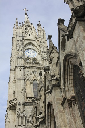 Quito, EcuadorWe flew from San Diego to Quito, Ecuador, via Houston. Since the Galapagos are owned by Ecuador we had to connect at the Quito airport for our flight to Baltra, Galapagos, Ecuador. But first we got two days in Quito to explore. Quito's claim to fame is the equator which passes near this capital. They took us to a big monument area dedicated to the equator. While in the city of Quito, we visited an old monastery with beautiful gardens. A naturalist guide was there selling books of photos of the wildlife in the Galapagos Islands. The books were $20 each and well worth it! Gar took a photo of Marguerite with the photographer. We also visited an old church with gargoyles of the Galapagos animals. Quite lovely. Our hotel was the JW Marriott and we were given an upgraded guest room that included access to a private club on the top floor. Unfortunately, Ecuadorian law says there can be no liquor, wine or beer sold on Sundays!! |
