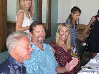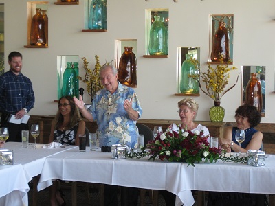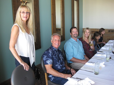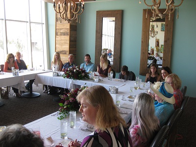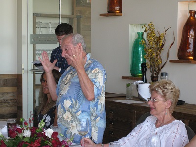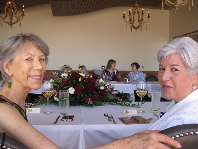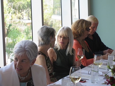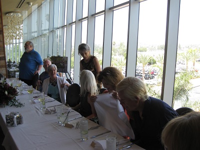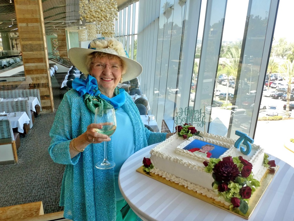 On Marguerite's actual 75th birthday, September 1, George gave her an elegant birthday luncheon at Vintana Wine & Dine in their private dining room. In attendance were 23 friends who all share in common attending one or more of our "legendary Holiday Open House" parties during the past 20 plus years, and many of whom we have known for well over 40 years! UCSD-related Friends of Marguerite's: Carol Archibald, Janet Wilson, Shem Clow, Janet Whitfield Engineer friends of George's: Craig Tyndall and wife Polly, Eric Sprunk and wife Patty Neighbors and dear friends: Irv and Barbara Erdos, Ron Martin and fiance Callie, "Dr Nick" Yphantides Marguerite's "girls" for whom she is Aunt Marguerite: Debi, Veronique, and Zoe Yphantides Globe Guilder friends: Pam Maudsley-Merrill and Joydelee Marrow Parents of our "grand dog Tonga": Meg (Craig Tyndall's daughter) and Brian O'Hearn Mother of Gar's best friend since seventh grade and travel buddy of Marguerite's: Renee Walter Very good friends who help us with many things, including our Open Houses and dinner parties: Sachiko Kleinfeldt and Misty Dawn Newton The beautiful flowers were provided by Simply Adina in downtown Escondido. The magnificent cake was made and decorated by Irv and Barbara Erdos, both of whom gave outstanding, humorous, and moving tributes about their association with George and "Marguerite across the street" for many years. Carol also gave a lovely toast about the almost 40 years she and Marguerite have been through "life" together. |