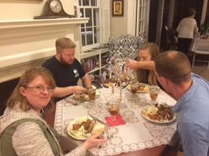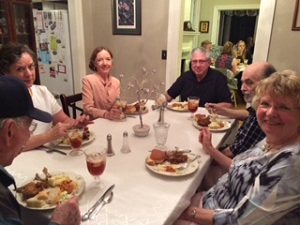 There were 12 Neville cousins who grew up together. The nine cousins in attendance enjoyed two evenings of family dinners held at the home of Lovett Bennett Jr and his wife, Missy. Also at dinner was Uncle Joe Neville, a retired Superior Court Judge who is now 93. Our other surviving aunt, Sara Neville Bennett, is 85 and will soon move to the Lodge at Bethany to occupy lovely rooms on the site of the original farm house. To date, there are over 65 decendents of Gesmon and Marguerite Neville!! Five children, 12 first cousins, 25 of their children, and at least 25 children in the next generation. |