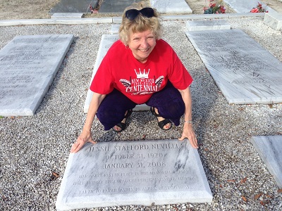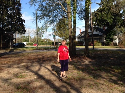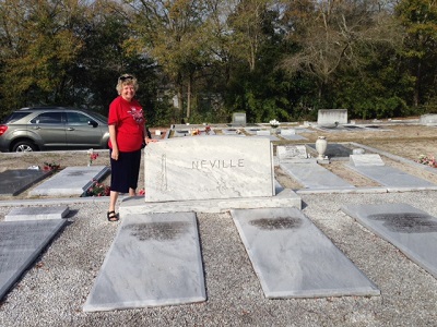 We also went by the lot that used to be "Grandma's little house". It is a very small lot -- the house was maybe 800 square feet and demolished a couple of years ago. Grandma loved living in town so she could walk to the First Baptist Church down the street. She had lived on the farm most of her life, did not drive, and was dependent on Grandaddy or cabs to get into town (less than 2 miles away but that seemed very far when we were children!). She really enjoyed her "freedom" when she moved to town in about 1970. Later we stopped at the cemetery where there is a large Neville plot with graves of many family members. The photo on the right is of the marker for our mother, Jessica Stafford Neville, who died in 2008. |