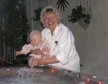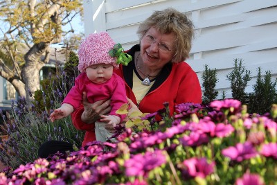 In 2010 Grace continued to grow and develop. In March Grandma Wheety enrolled in a Gourmet Chef Crash Course at Laguna Culinary Arts school for a month -- this included regular overnights with The Jackson 3. When the spring flowers started to bloom, Grandma and Grace sat down in the middle of them! Grace's first plane trip to New York was also in March. She and Chandi enjoyed St Patrick's day in NY City and Grace wore the little "tutu" made by Grandma. They also spent time with Griffin and Miriam, and Opa and Oma in West Hampton Beach, Long Island. In April Grace started swimming lessons with her Daddy. Grandma enjoyed the afternoon at Sherman Gardens with Grace and Gar while Chandi got some work done! On 4/25/10 we had a backyard party for about 35 people and Grace, Gar, and Chandi all came. Grace was the "star of the show", of course, and got her feet wet in the jacuzzi. Grace was christened in Long Island on June 27 in a dress Grandma made from the bottom of Chandi's wedding dress. Gar and Chandi's good friends, Gabree and Romel are her Godparents. A lovely reception followed at Oma and Opa's home and several of Gar's relatives came too! In October of 2010 we went to Long Island and enjoyed Grace's first birthday in New York. All of us were there together and took terrific photos on the beach. For her second Christmas, Grace and her parents were in Long Island with Oma and Opa and the cousins. Grace is walking now which will be a challenge in 2011 for her parents and her new dog Gretel. |