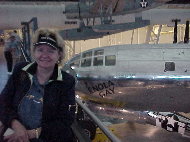 Enola GayWe took a red-eye to Dullas Airport so that George would be close to the Smithsonian Annex Museum that has their big exhibits. Here Marguerite is next to the Enola Gay, the plane used to drop the first atom bomb on Hiroshima. Many planes, space capsules, and other significant aerospace items on display here including the Corporal Missile system which is the system George worked on in 1961. It was obsolete even then since it was first deployed in 1952. |