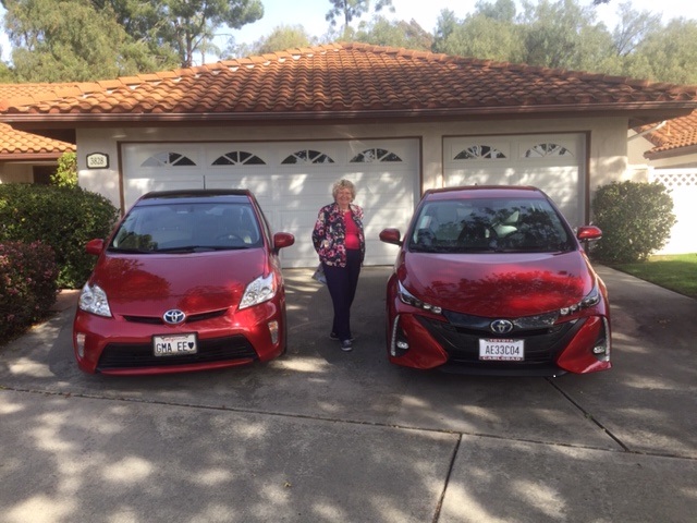 ![]() Marguerite's New (March 2019) Prius PrimeThis is Margueritie's new 2019 Prius Prime Plug-In Hybrid on right. On the left is her 2012 Prius Hatchback. We have fallen in love with the Prius. Mileage so good and car if very solid. Marguerite gave George's retirement Cadillac to Gar in Texas, so we bought this as a replacement. |
