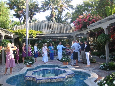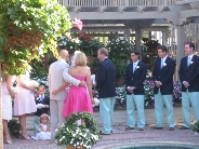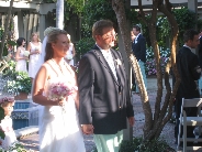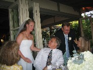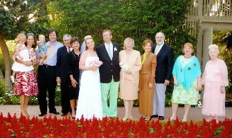Marguerite, Pam & Norm EstabrookOn Saturday afternoon, guests were invited to enjoy sangria and visit while waiting for the ceremony to begin at 4:30. The minister for the wedding was Pam Estabrook, a very close friend of Gar's dad, Crawford, and the same person who married George and Marguerite several years ago! During the ceremony she remembered Crawford, Marguerite's mother, and other close family who had passed away. |