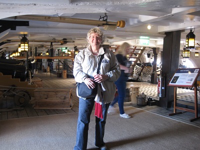 HMS VictoryOur last full day in London, finally. We were so tired and we could not believe our vacation was to START tomorrow with our cruise to Iceland. We were so looking forward to a sea day where we had nothing to do. But not today, off to the train station and then a two hour ride to Portsmouth (home of the English Navy). Portsmouth is an old town with a tourist theme. We got a tour of the bay and the military ships and then went to the Navy Museum. We saw the first UK Iron Clad sailing war ship, the Mary Rose which sunk in Henry VIII time period, and the Victory, the ship where Admiral Nelson died. Needless to say there was tons of walking and we were so tired when we go back to the hotel to pack for our train ride to Harwich, our departure point for Iceland. |