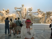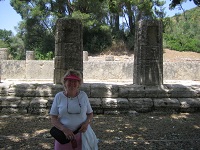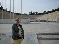 Athens, GreeceWe had both been to Athens before so this was a visit reliving our youth (MJ in '64, GD in '83). Because of the strikes by government workers we were expecting the worst, but because it was a weekend, we saw no problems. Athens is a large city with a nice atmosphere. The first picture below shows Marguerite in front of the new outdoor stadium built for the 2004 Olympics. The remaining photos shows us at the Acropolis. |