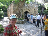 Ephesus, TurkeyGeorge had been to Ephesus before but Marguerite had not. However it was much more hot and crowded than 27 years before. We started off with a tour of the Virgin Mary's House. According to local legend Mary lived her final years here. Then we toured Ephesus. The big deal about Ephesus is this large Roman city had its harbor silt up, therefore everyone left leaving a great Roman City pretty much as it was in about 200 AD. This city is where Paul spoke to the Ephesians and Mark Anthony and Cleopatra honeymooned and the Temple of Diana (a wonder of the world) existed. See info on Temple of Artemis/Diana. The first picture shows a a statue of the Virgin Mary and the second picture shows a reconstruction of her house. Marguerite got some holy water from this site to give to Debbie Martin. The next four pictures show us touring Ephesus. |