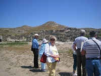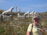 Mykonos and Delos, GreeceGeorge and Marguerite had been to Mykonos before so were not too excited about this stop. However, Delos is a historic place George was excited to go (an island near Mykonos was a Greek history holy place where Apollo was born (not our dog but the big guy Apollo) and where thousands of years of settlements are preserved by the Greek government). The first pictures show us on Delos looking at history that goes back 3000+ years. The last photo shows Marguerite getting ready to shop on Mykonos. |