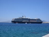 Our ShipThe next day we got on the train again and ended up in Venice with tons of luggage looking for our ship. Well George checked this out with Google Earth before we left and knew exactly where to go, without luggage and a wife. With luggage and a wife, it got too complex so we got a taxi to drive us 1.5 miles, or 1200 yards as the crow flies, to our ship waiting for us in the harbor. The Holland American Westerdam is a very large ship with over 2000 passengers and was built in Venice in 2004. It was to be our home for the next 12 days. |
