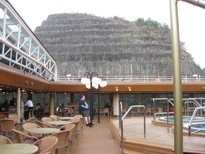 Panama CanalIt took us 10 hours to pass through the Canal going from the Atlantic to the Pacific using a west to east passage (sounds strange but that is the way they dug it). Our ship rose up about 70 feet, traversed the isthmus using a man-made lake, and paid fees to the Panamanians of about $238,000. The first picture is of where the French started digging their sea level canal which was abandoned. The other photos are of the canal during our passage. You see other ships waiting to pass through the canal but they are not allowed in until funds have been transferred to Panama (no tickie, no laundry). |