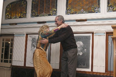 Dr. Tony CatanzaroThis is Marguerite's new boss. He is getting a hug from Marguerite after giving his speech. Thanks to Tony, Marguerite will only be virtually retired. She will have a part-time job with Tony as Administrative Director of a contract Tony received from the National Institute of Health (NIH). Tony and his colleagues will be working on a 5 year project ($6,200,000) to develop training tools to increase the knowledge of TB education within healthcare professional schools using advanced state-of-the-art internet technology. George likes the idea that Marguerite will be busy the next 5 years and will be bringing in some extra cash. |