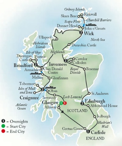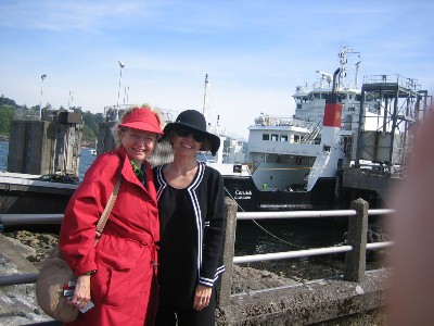 The Globus TourWe joined the tour group on Saturday evening, May 23. The tour group included 42 people -- mostly couples, mother-daughter pairs, and a few singles. We were the only "sister set" among the group. Our tour guide John was outstanding -- a delightful Brit with great knowledge of Scotland, England, Ireland, Wales, and the history of Great Britain. Our driver, Alister, was terrific too -- driving a large Globus bus all over the tiny roads of the highlands and then getting us on and off several ferries so that we could visit the islands. |