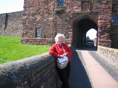 | Mary, Queen of ScotsWe saw many castles on the trip -- some in ruins and others still occupied. Here Marguerite is waiting to visit Carlisle Castle which has guarded England's frontier with Scotland since the 11th century. It is at this castle that Mary, Queen of Scots, was imprisoned in 1568. |
