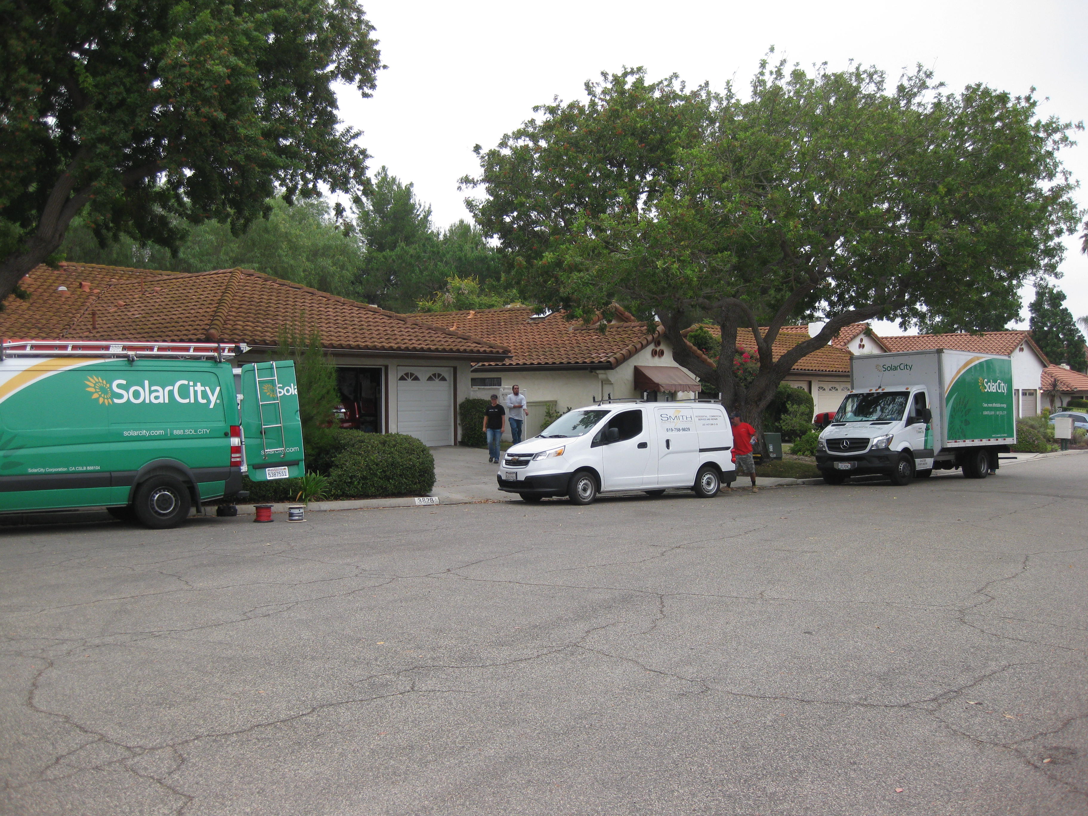 We decided to have a solar system installed on our roof. We selected Solar City as our vendor since they are the largest vendor in our area with experience to match, George also loves Elon Musk, an owner of Solar City. Part of the reason was financial, part guilt over using so much air conditioning electricity, and part was the panache of the techology (we can't afford a Tesla car). We decided to lease a system rather than buy for reasons of no out of pocket expense and full warranty for the life of the system. The lease is for 20 years. Because George and Marguerite were on our HOA Board we decided to put the panels where they would not be seen verses optimum for solar transfer of power. We therefore have a large 42 panel system and pay accordingly. However we do expect to save $100 per month on average unless rates change which is possible since energy providers are being put in a tough spot. Contract was signed about April 22, 2015, we connected to the grid on September 29, 2015. It rained last month and no leaks were noticed in the roof. Monitoring of the system works fine on our PC and on Marguerite's cell phone. |