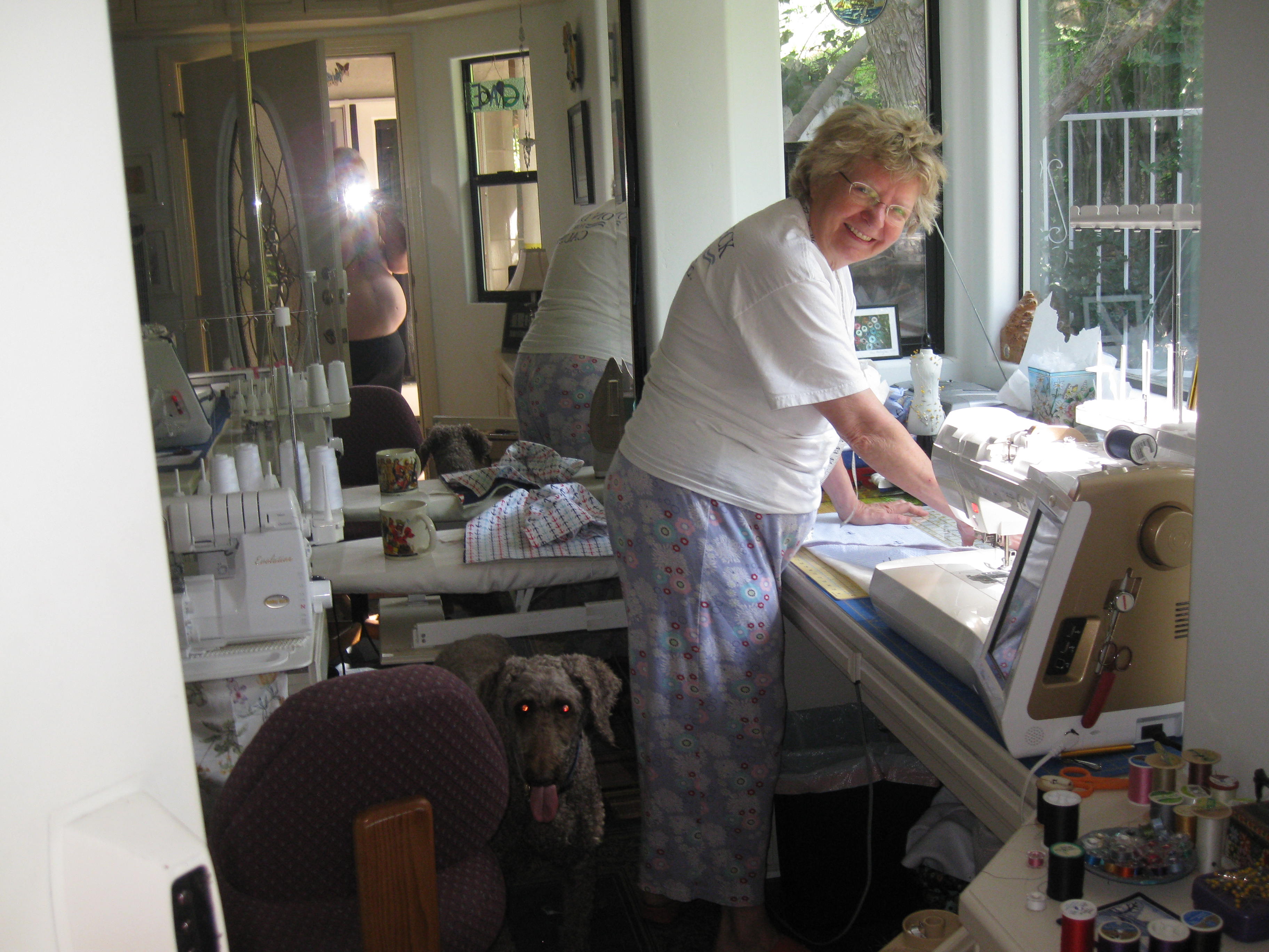 Step 6: Keep Wife and Dog HappyOur house guest dog Gretel (a granddog) was upset with all the noise so she and Marguerite stayed in the sewing room as activity progressed. |