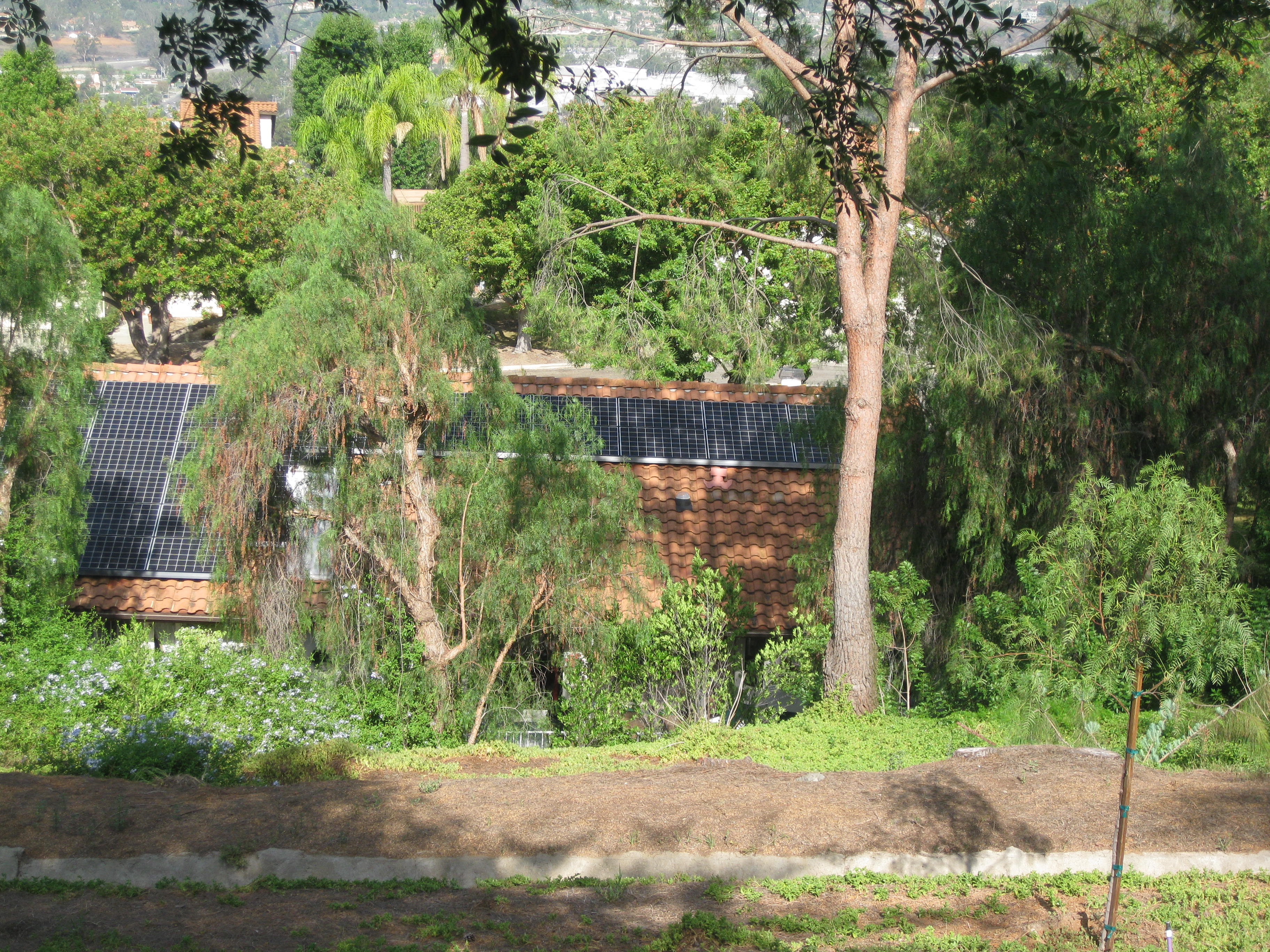 Step 9: Admire WorkI usually like to stand back and admire the work I have done. Since I did not do any work I made an exception and admired the work the crew did. Since I designed it not to be seen this was hard to do. So I climbed my back hill and took photos of the east facing roof. The part over the garage is very hard to see. Photo was taken at 9:30 AM. By 10:30 the solar cells are out of the shade and receive direct sunlight. The cells on the garage roof receive more sunlight. |