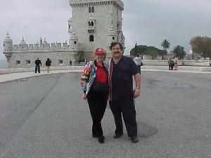 Marguerite & George In LisbonWe started our official tour in Lisbon. Saw the city sites, old city, and famous church where Vasco De Gama is buried. During its heyday, Lisbon was the intellectual and scientific capital of the world. We are visiting the costal defenses in this picture. |