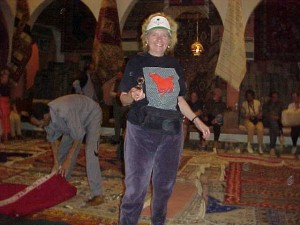 Marguerite In Marrakech Rug Co-opThis is Marguerite in a rug co-op where they sell rugs made by cottage labor. As you can see, this is Marguerite's idea of touring. She ended up getting a $650 rug for $425 that anyone could buy in the USA for $195. Marrakech looks like San Bernardino in topography but has very nice sections and very old sections. We went to a Fantasia Nightclub that had Moroccan dancing and outdoor horseback rider type entertainment. |