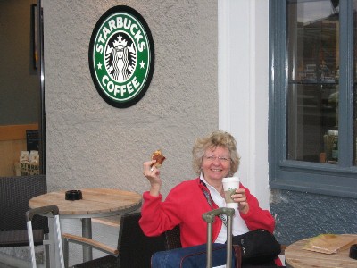 Starbucks in ZurichWhen we got back to Zurich about 3 PM MJ was in no shape to tour Zurich. So she went to bed at our hotel and George toured Zurich on his own. The next morning MJ was back to herself and got a Starbucks to get her motor running and off we were to Munich, Germany, by Eurorail. Driving a car on the small streets of European cities is not something George wanted to do. |