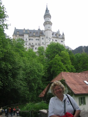 The Castle, Another ViewWe walked down from the castle and this is MJ and the castle from a different perspective. There are so many pictures of this castle because it looks different from the angle you are looking at it. It is not a real castle (defense fortification); it is a pretend castle dedicated to music. The throne room is most outstanding ... but they never got to build the actual throne chair .... but the castle does have one toilet for the king near his bedroom. |