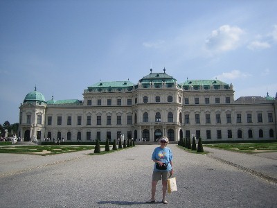 ViennaThe next day we moved on to Vienna (only called Vienna by us English speaking folks, called Wein (Veen) by the locals because it is named after the local river going through the town. It was a Roman fort at one time to protect the empire from the heathens to the north and east .... this I did not know. It has more beautiful buildings per mile than any city I have run across in my travels. The centers of European Culture in the 18th and 19th centuries were London, Paris, and Vienna. London and Paris because of mercantilism and Vienna because of all that Spanish gold inherited by the Hapsburgs. Here MJ is in front of Schönbrunn Palace (summer palace of the Hapsburgs), which is outside of Vienna. |