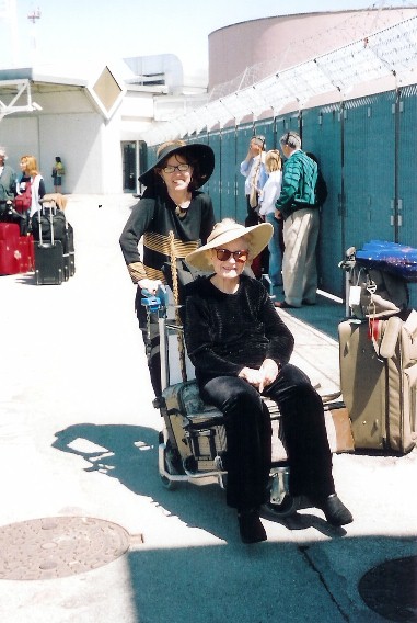 Innovative WheelchairWhen Betsy and Jessica got to the Venice airport, there were no wheelchairs for transport from the terminal to the water taxi. Betsy was very creative in making a wheelchair out of a luggage cart and their two suitcases! Mother rode several blocks in comfort on this innovative transport device! Marguerite got to Venice later and met them at the hotel. Of course, the water taxi let them out some distance from the hotel, so Betsy found a bench for Mother, found the hotel, and then found a porter and wheelchair to accompany her back to fetch Mother! We reversed the sequence, including creating another luggage cart wheelchair, when we left Venice five days later. |